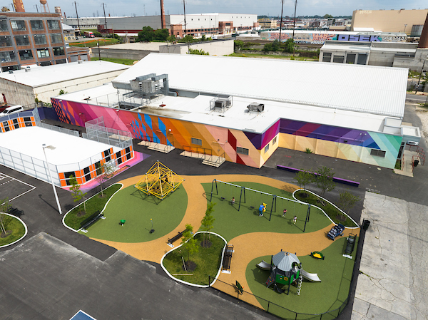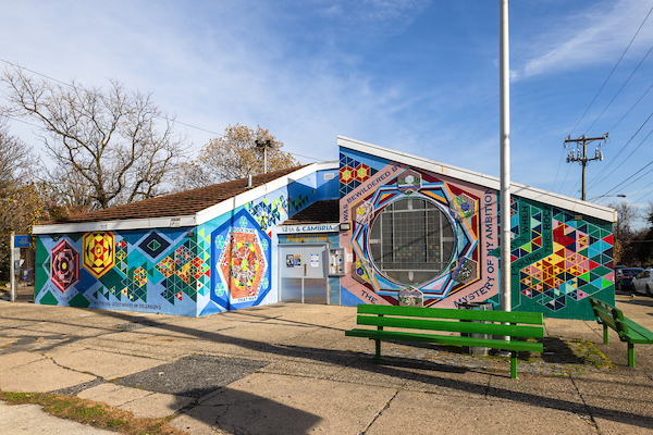 • Untitled © 2023 City of Philadelphia Mural Arts Program / Katey Truhn & Jessie Unterhalter (Jessie&Katey), Heitzman Recreation Center, 3631 Amber Street, Photo by Steve Weinik.
