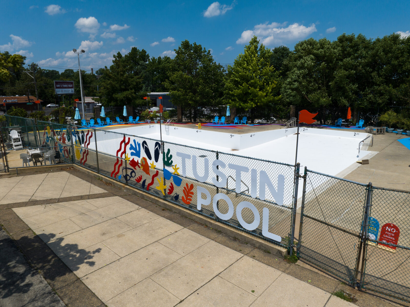 • Swimphilly: Tustin Recreation Center © 2023 City of Philadelphia Mural Arts Program / Serena Saunders, Tustin Recreation Center, 5901 Columbia Avenue. Photo by Steve Weinik.