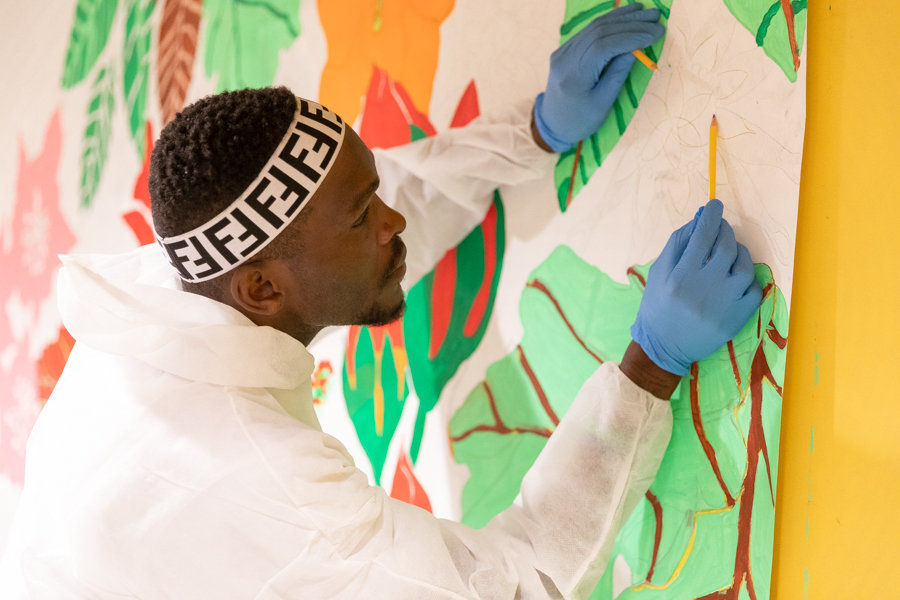 Color Me Back at the South Broad Street SEPTA Concourse was completed in November 2020. This “next step” work opportunity was an evolution of the first phase of the Color Me Back project, where ten individuals who participated in Phase I will be randomly selected for four consecutive four-hour work days, during which they received a variety of art-making trainings, from priming and brush skills to installation. This longer engagement with participants allowed for deeper connections and increased skill-building. The participants received payments of $50 per day, for a total of $200 for the four days of work.