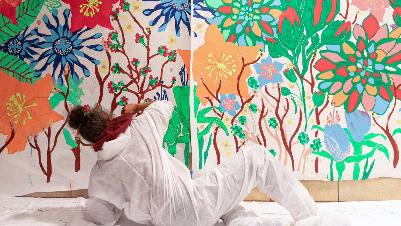 • Lovely Day © 2021 City of Philadelphia Mural Arts Program / Lauren "Cat" West, Walnut Locust subway concourse. Photo by Steve Weinik.