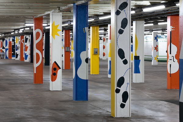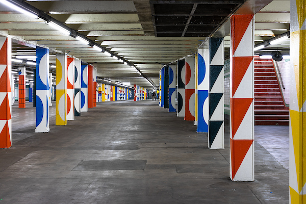 This new phase of Color Me Back covers 200 columns in the SEPTA concourse along the Broad Street subway line, between City Hall and Walnut Street, with brightly-colored public art, designed by Philadelphia artist Lauren Cat West and painted by the participants in the program. West spent two months in weekly workshops with program participants developing ideas and symbols to be integrated into the design.