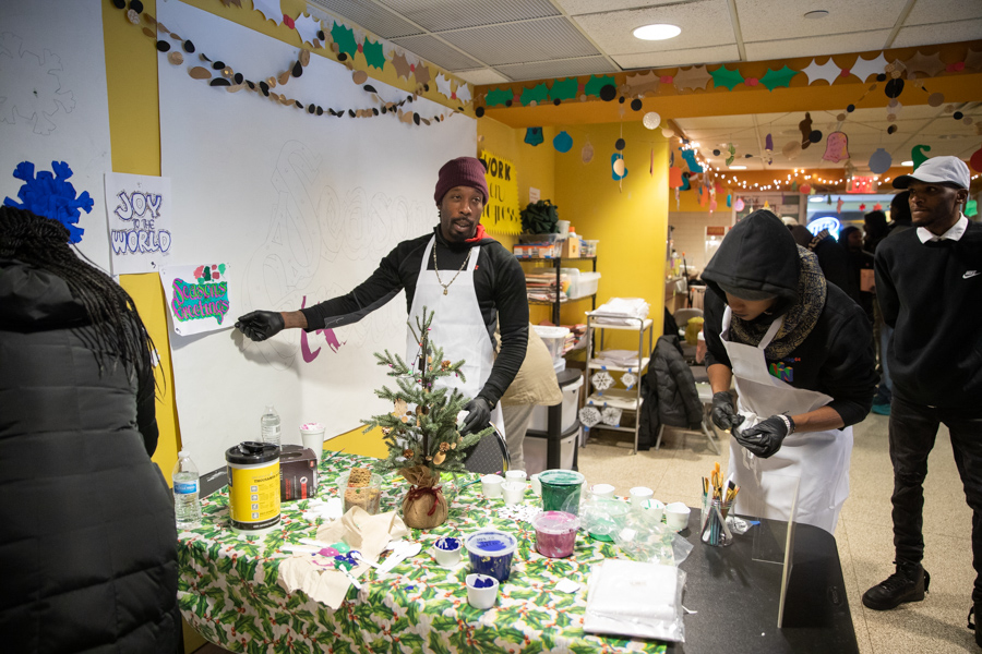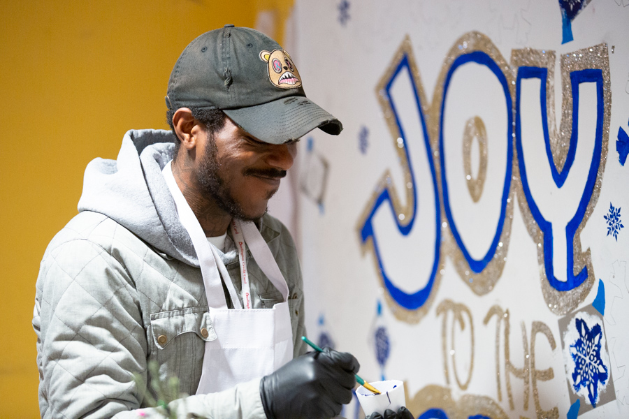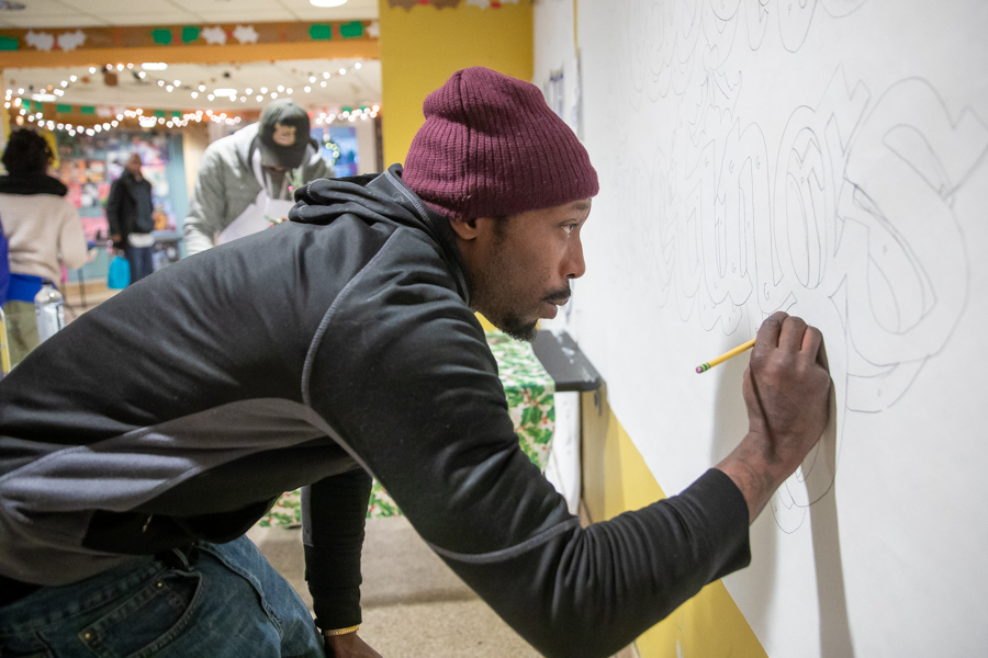 Each day of the program, between 80 and 100 individuals gathered to participate in the lottery for one of the twenty daily slots. Those who are selected helped design and paint mural panels which were installed in the concourse. Outreach workers (Certified Recovery/Peer Specialists) have learned that the most-needed services are employment, shelter or housing, and basic needs, such as showers, clothes, and food.