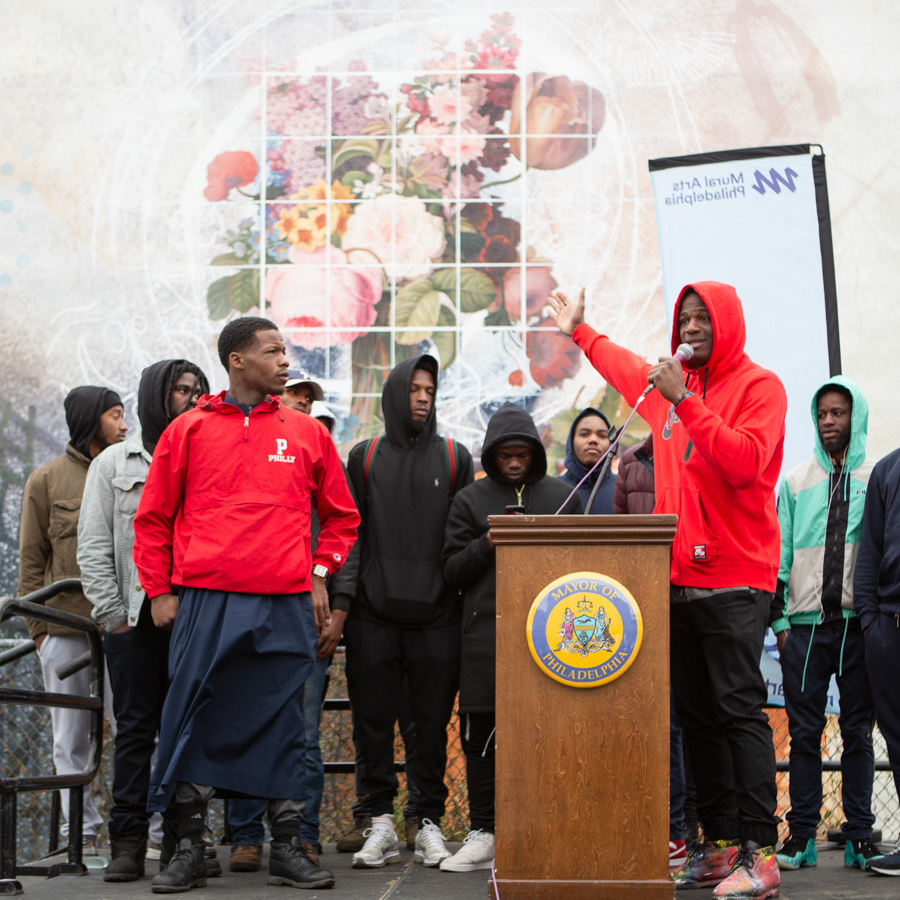 The Restorative Justice department facilitates projects at Mural Arts that amplify the creative voices of people who have been disconnected from society. From our Reimagining Reentry Fellowship and the nation’s first Artist-in-Residence program at the Philadelphia District Attorney’s office, now in its second year, artists are bringing light to issues to inspire change. Our latest End the Exception project joined a national campaign and engaged a network of incarcerated artists to share their experiences with prison labor, drawing attention to the persistence of legal slavery in our country.