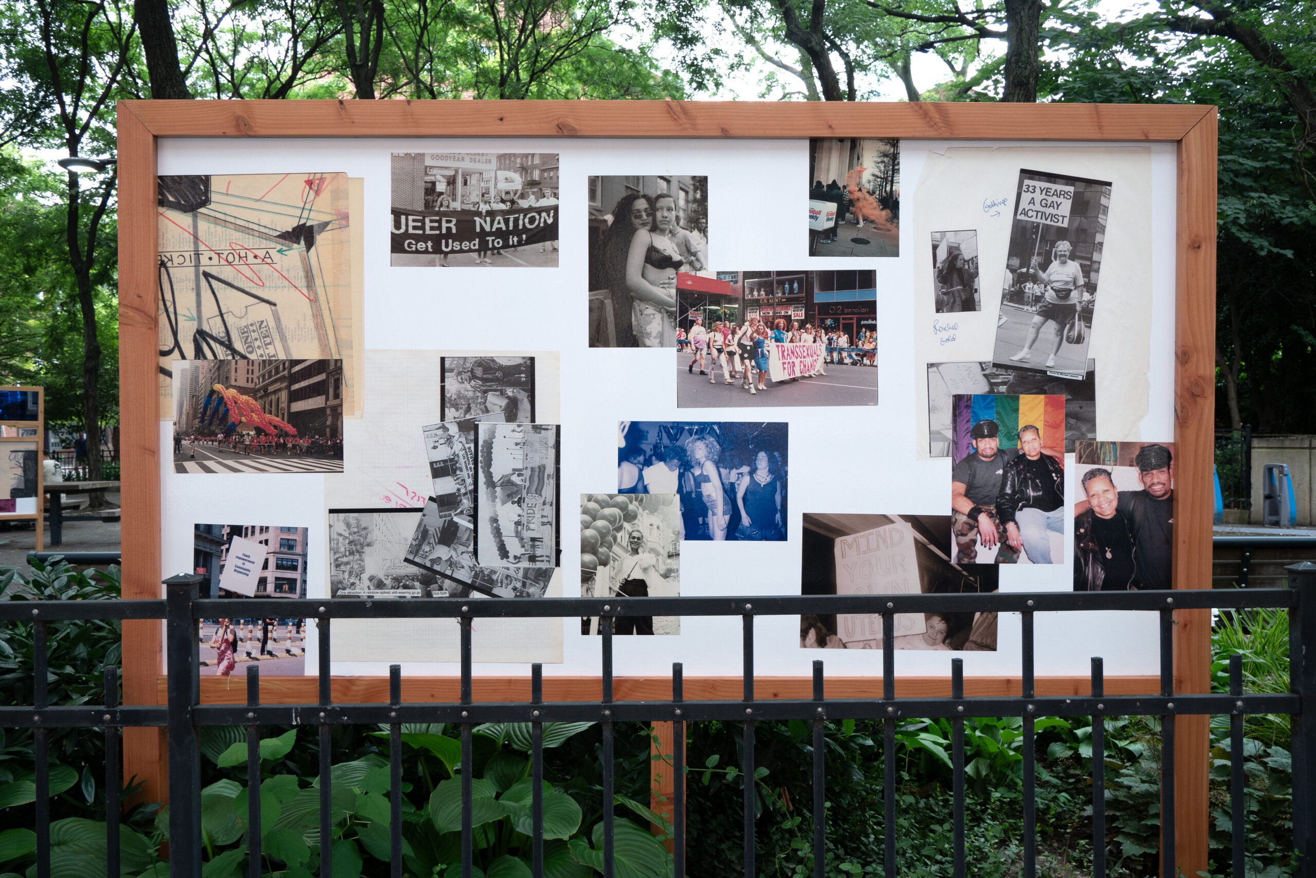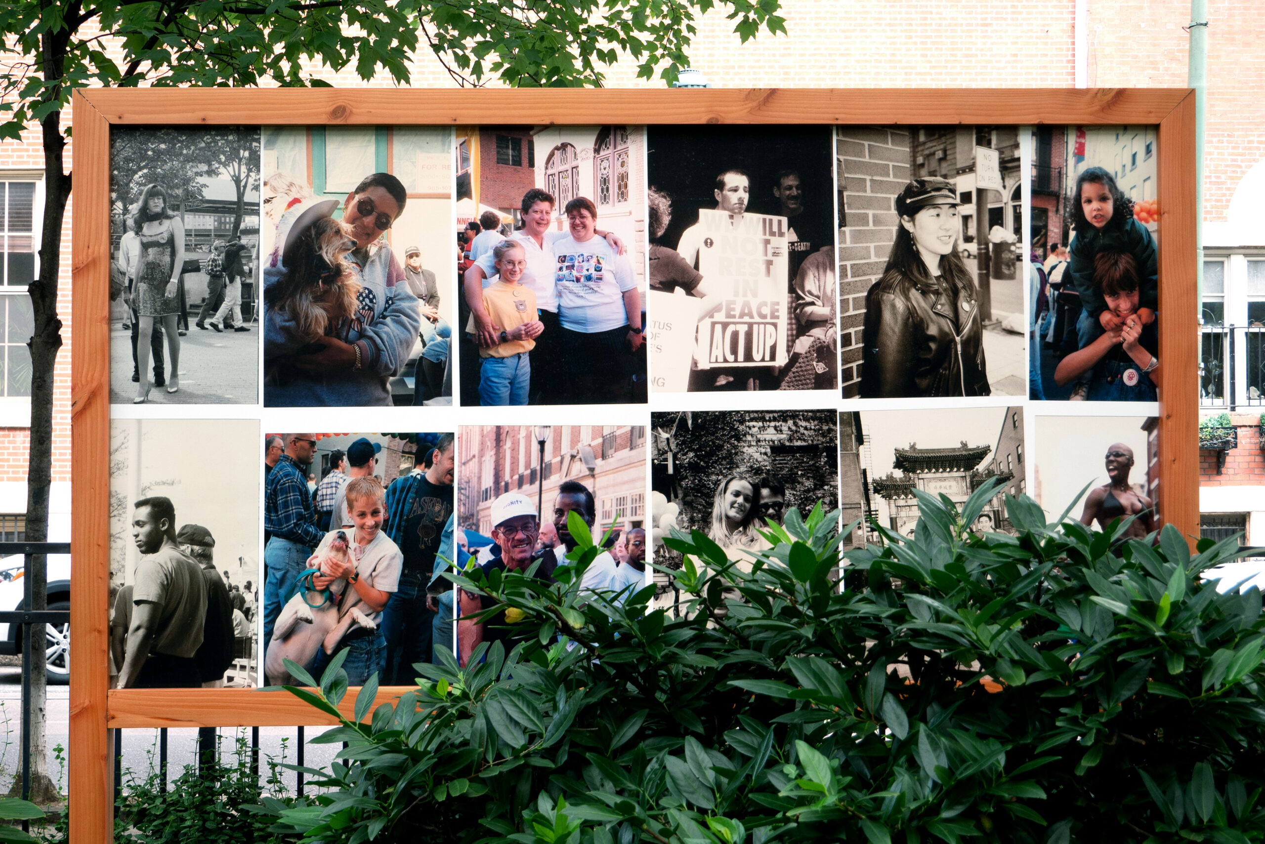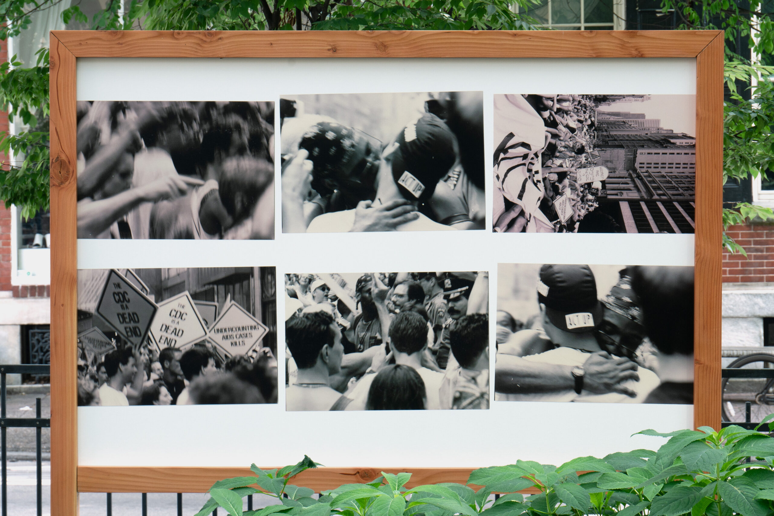 The project builds upon significant time George has spent in the John J. Wilcox, Jr. Archives at the William Way LGBT Community Center, Philadelphia’s most extensive collection of historical LGBTQ materials and ephemera. The exhibition is on view in Louis Kahn Park, the only public space in Philadelphia’s Gayborhood that has historically been a gathering place for the community. AND INTO THE STREETS opened during Pride month as a call to foreground politics in celebrating this year. Many of the political issues that emerge in this installation remain hurdles today, such as affordable housing, disability rights, and the health and well-being of trans and gender nonconforming people. Recurring individuals make appearances as well, some of whom have passed and others who remain stalwart activists and anchors in this community. There is a will for the images to speak on how the past is always with us, either in memory or in place, and how the livelihood of LGBTQ communities, in particular, relies on strong bonds forged across lines of difference and generations. Grounded in time yet still able to speak, the lingering traces in these images breathe new life into the present, coalescing a joy and politics that call us into the streets and into a world we are still becoming.