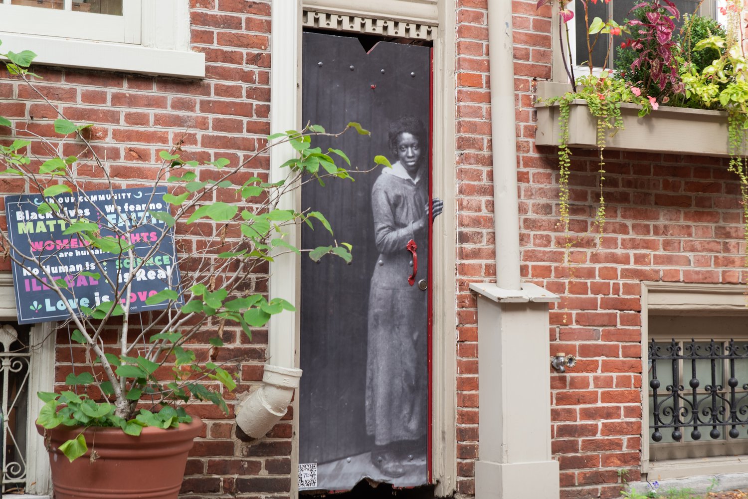 Reflecting Revenants is an outdoor installation that pays homage to the vibrant history of Philadelphia’s former 7th Ward as a center of African American culture and community. Using decals and banners, artists Amelia Carter and Beth Naomi Lewis skillfully merge candid archival photographs of Black residents between the early to mid-20th century with the present-day landscape of the Ward, conjuring an ethereal “energetic imprint” that transcends time.  This immersive experience unveils these images organically, adorning surfaces of buildings across the Ward, evoking a spectral presence. Reflecting Revenants offers a unique and introspective journey into the historical heartbeat of the 7th Ward, reviving its memory for the next generation.
