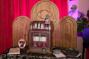 Time Bandit of the 7th Ward features a “fictional artifact” from Illadelph Dreams: 2045, Sumpter’s latest chapter of the transmedia narrative Graffiti in the Grass. The artifact is a fully functioning 1910 Bell Mills vintage slot machine running on 5-cent nickels and its original century-old machinery but playing with a set of 6 new symbols. Sumpter designed these symbols to reflect the rich black history of Philadelphia’s 7th Ward, her own family legacy, and the archetypes and symbols of Illadelph Dreams: 2045. Time Bandit is designed to blur the lines between art and artifact, history and myth, the past, and the speculative future.