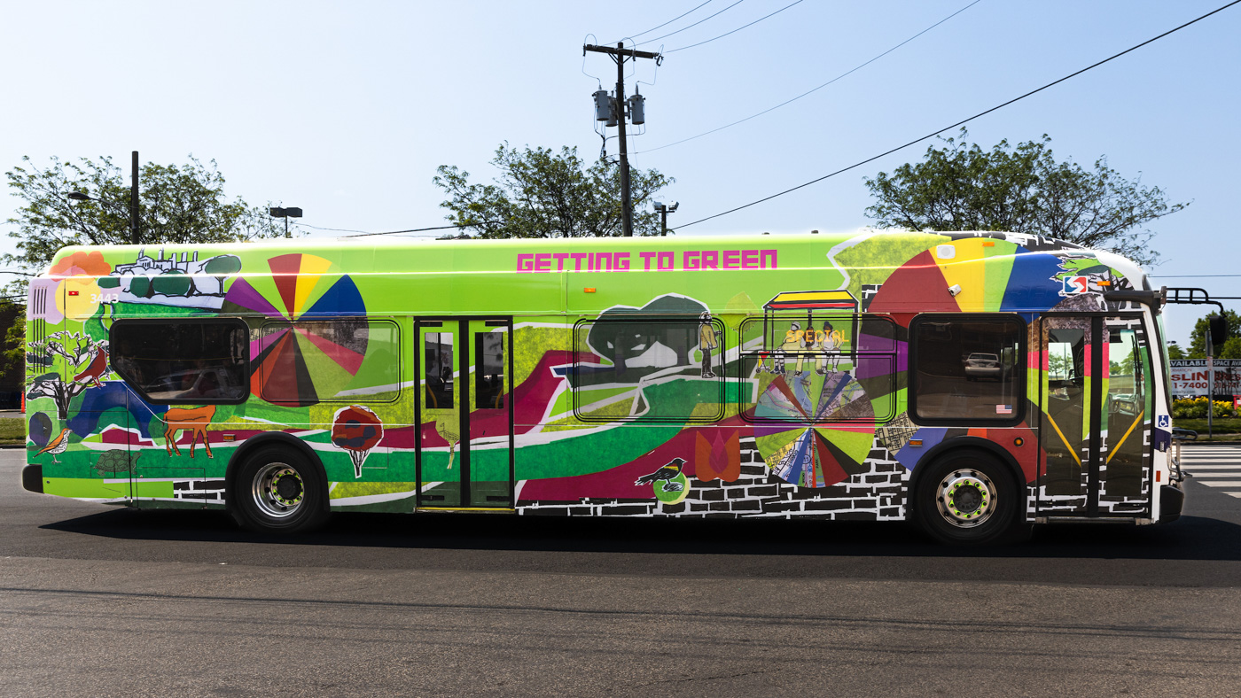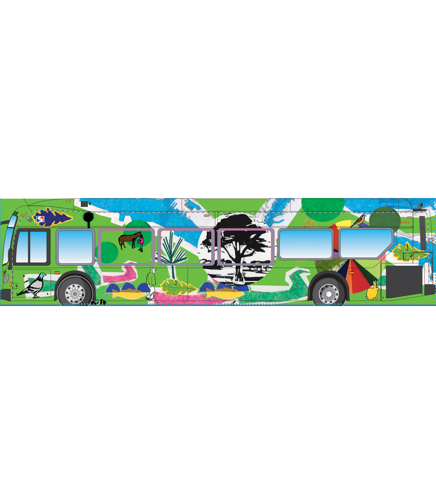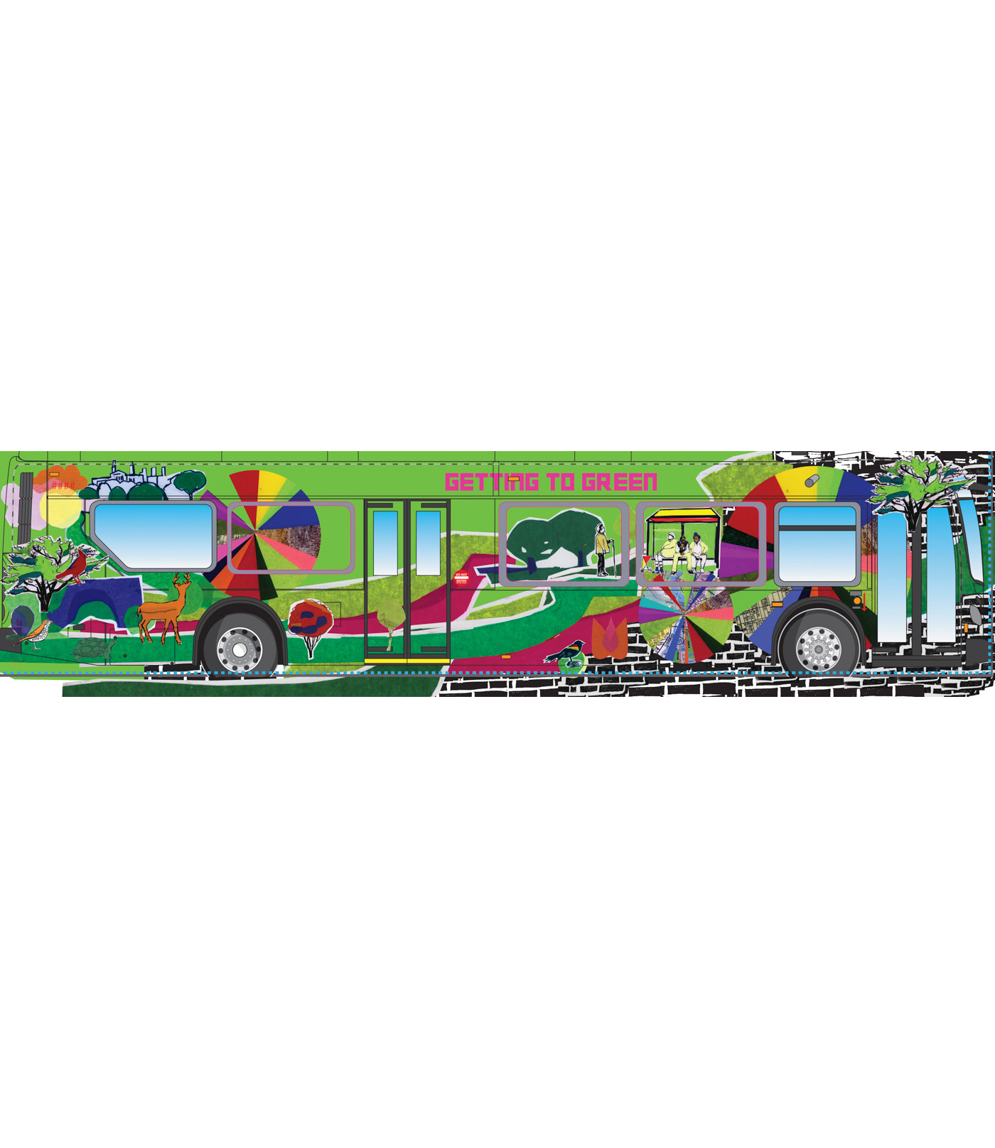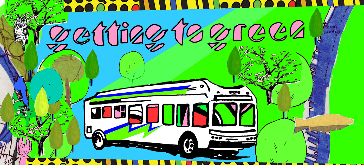 Getting to Green: Routes to Roots is a multi-disciplinary public art project in Philadelphia that encourages residents to explore the city’s green spaces through public transit, promoting the discovery and rediscovery of these areas along how to access them. The artist team of Shira Walinsky and Laura Deutch is guiding this initiative, creatively forging connections between urban dwellers and the city’s natural gems. Walinsky’s unique visual artworks are used to inspire and activate riders, including a captivating bus wrap, eye-catching posters in bus shelters, and hand-drawn printed maps. Two chartered bus rides and four smaller trips constituted adventures on the 38, 64, 7, and 9 bus routes. Deutch’s video profiles document the experiences of diverse riders along the routes in tandem with Walinsky’s visuals as a backdrop to these compelling narratives.