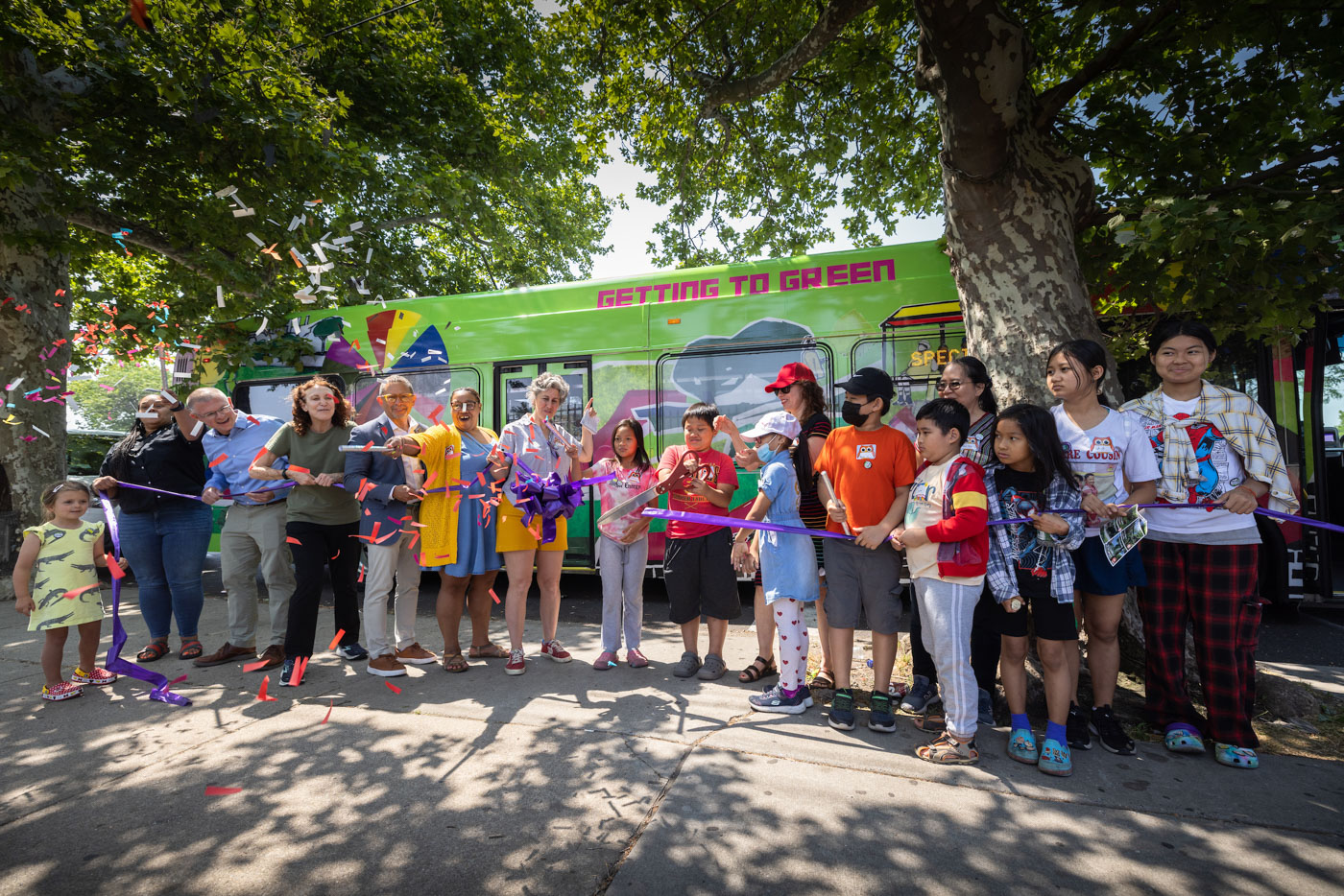 • Exciting moments at the Getting to Green public launch and Route 7 bus wrap unveiling! Photo by Steve Weinik.