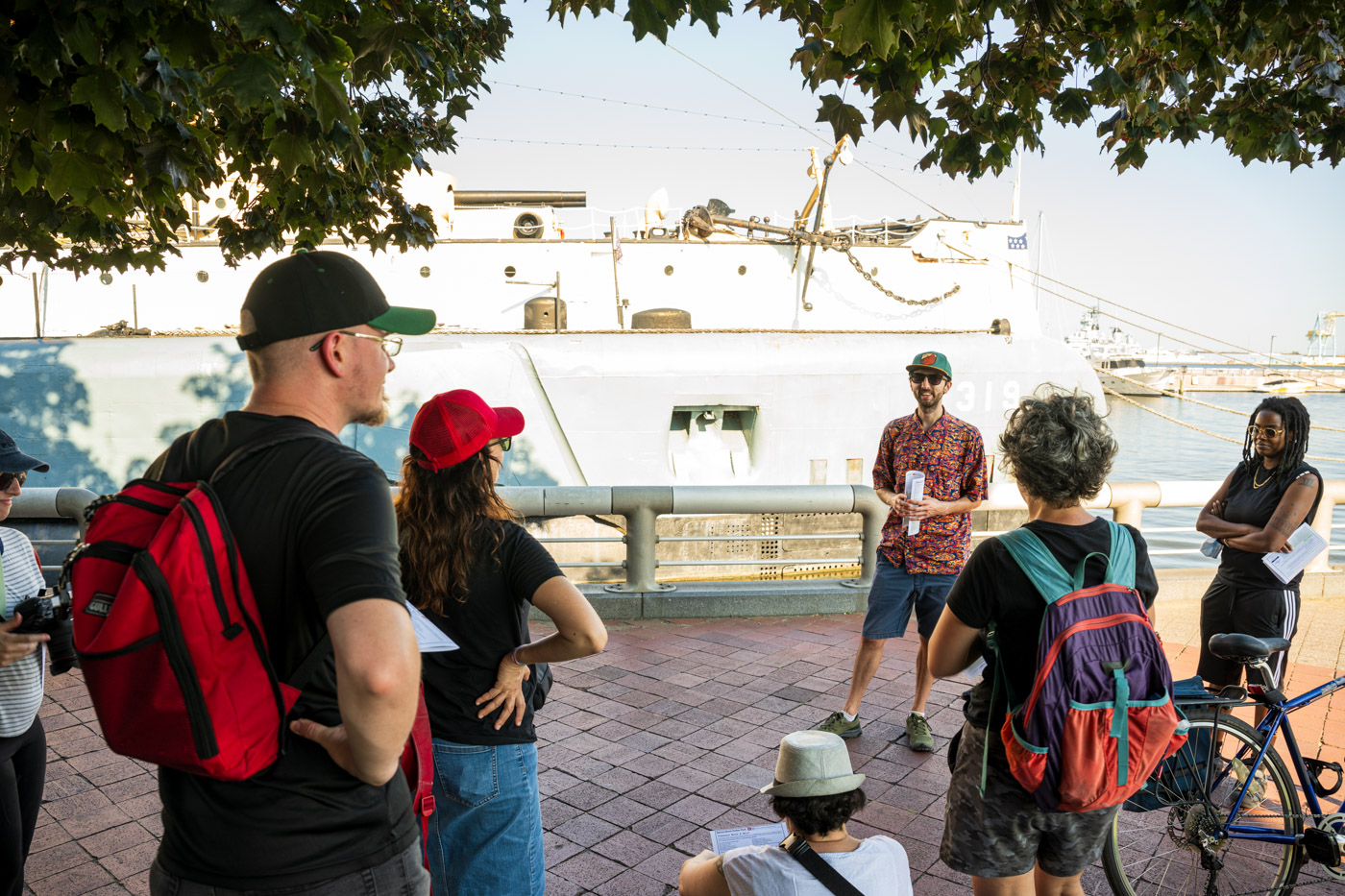 • Aboard the wrapped bus, Getting to Green organizes coordinated excursions with community partners traveling from 4th & Oregon in South Philly to 29th & Pennsylvania Ave for access to Lemon Hill. Photo by Shira Walinsky.
