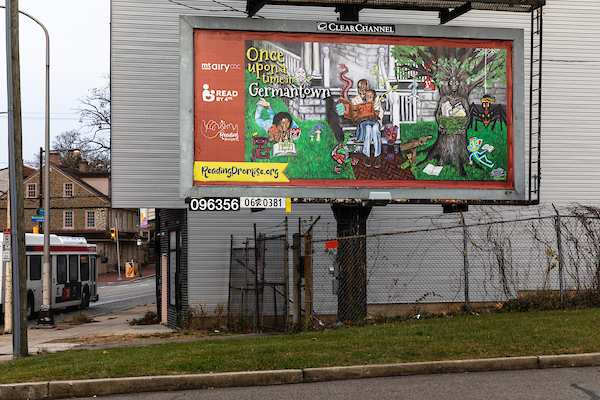 Once Upon a Time in Germantown, billboard design by Faruq, Faysal, and Khaleel Adger. Photo by Steve Weinik.