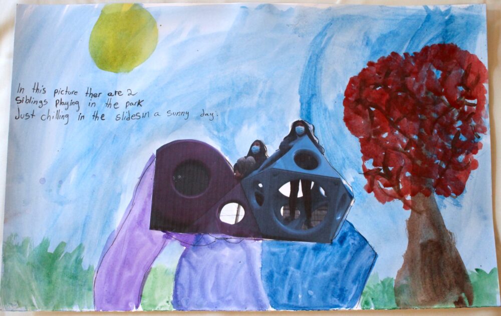In spring 2022, the second phase of the project kicked off with teaching artists adapting an art-based curriculum for a series of workshops in school and afterschool programs involving children ages 5-12. Children participating in these workshops generated stories and illustrations to inspire Storybook Mural artwork. Lead teaching artists included: Lisa Jungmin Lee, Rebecca Miller, Julia Gutman, Sabriaya Shipley, Moneek Pines-Elliott, and Dominique Tocatlian.