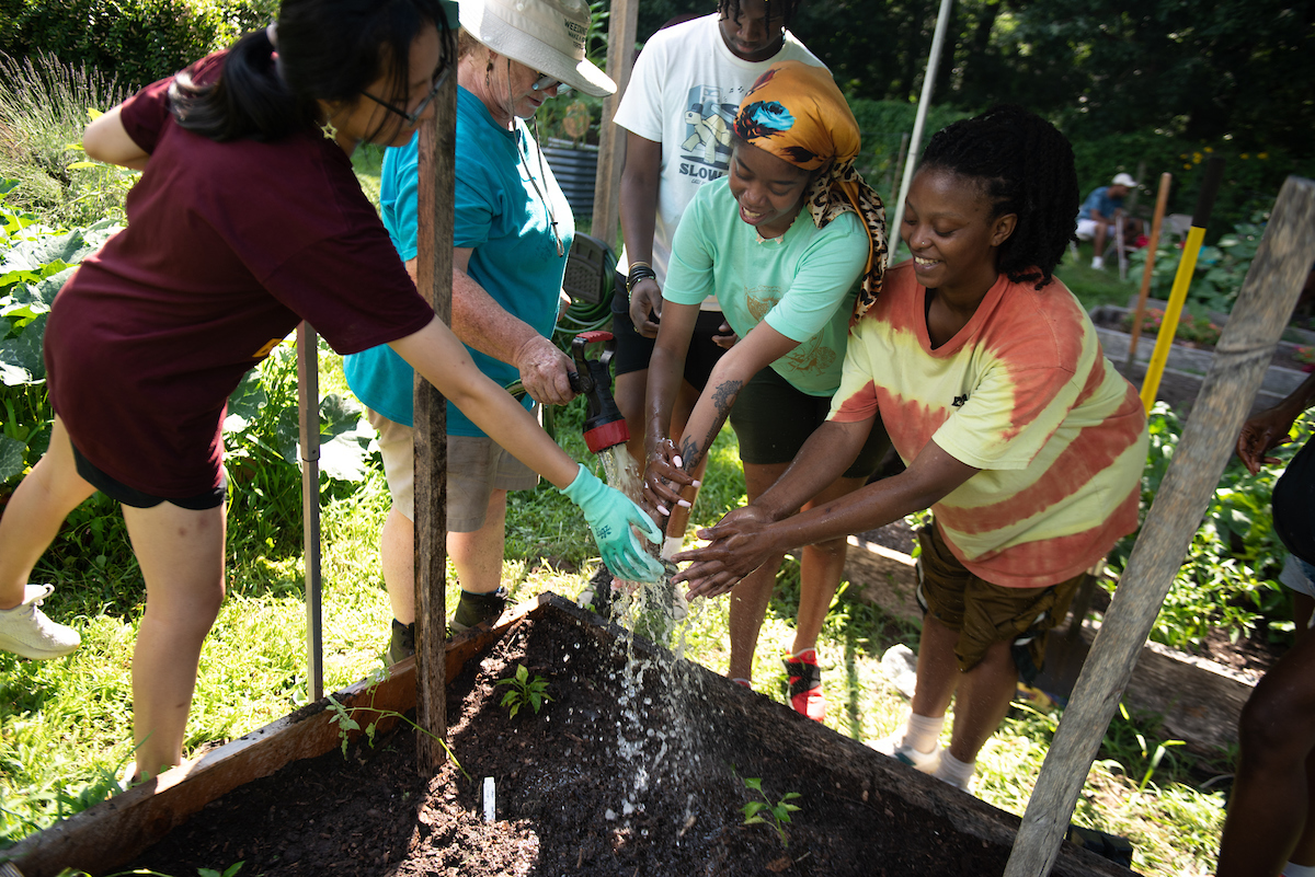 Our Land, Our Movement is a public art project focused on healing our bodies and lands. Led by artist Marguerite Hemmings, this expansive series engages with communities living in West Philly, Olney and Chinatown who feel disconnected/unsafe/restricted from their bodies and neighborhoods. During the summer and fall of 2023, community members can participate in free workshops by urban farmers and artist organizers, witness performances by teens in public spaces, and attend a dedication revealing new public artwork.